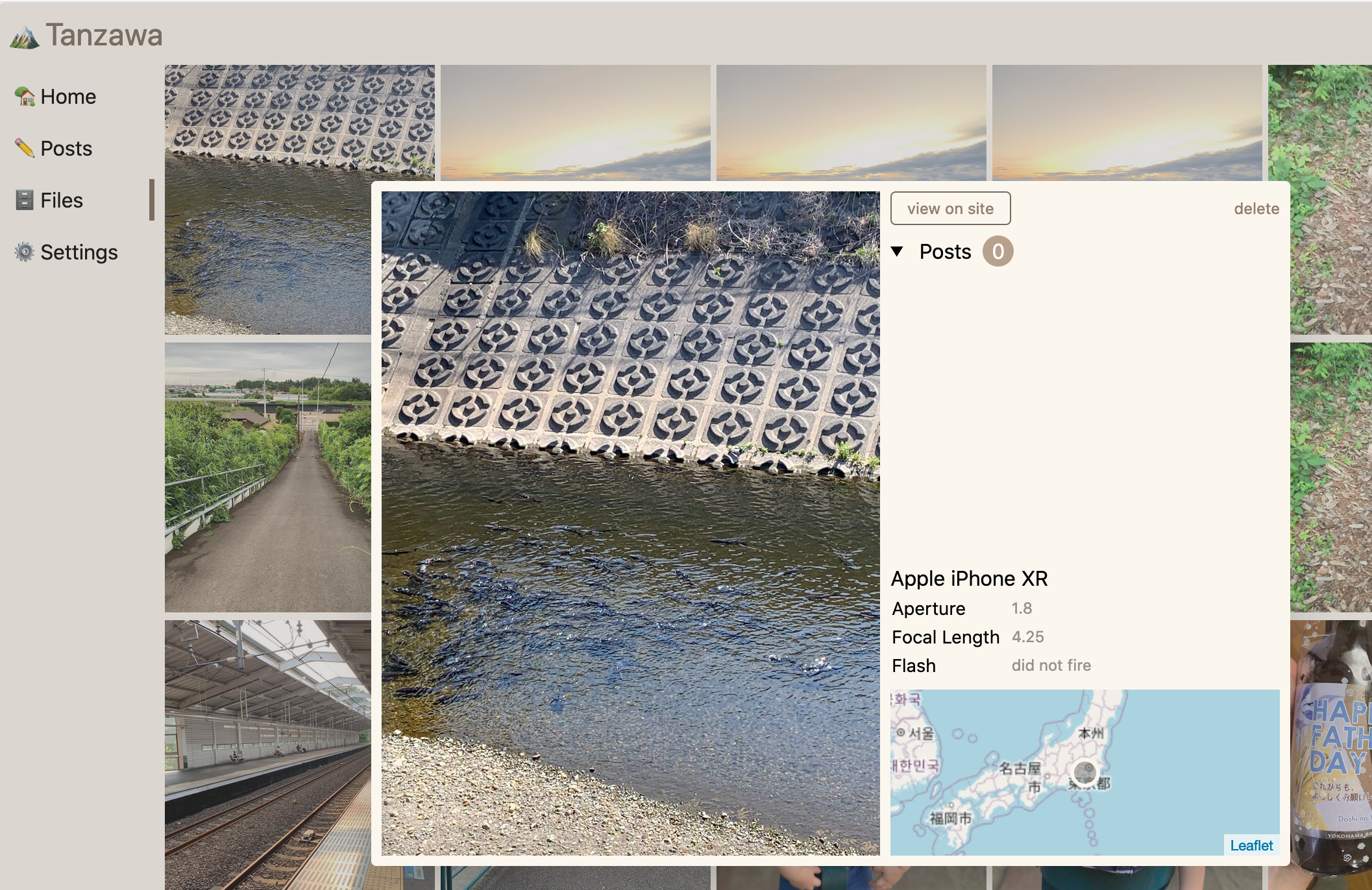 byI started working on the basic file management interface for Tanzawa. Right now it's quite basic. Clicking any image in the grid will pop up a modal with a larger version, links to the posts it's used in, and meta information.