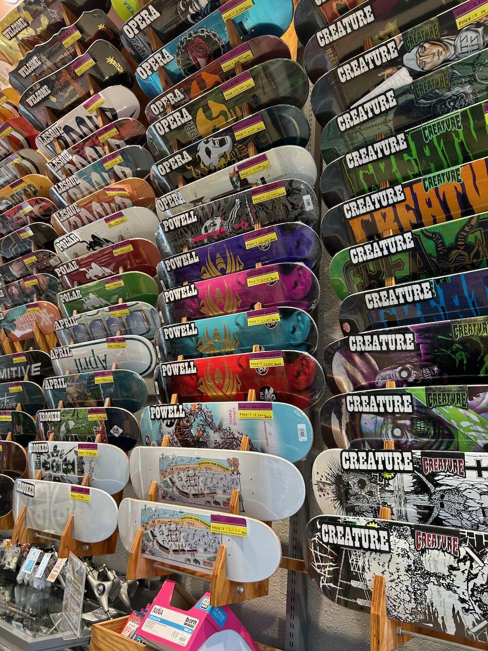 Absolutely massive selection of decks and trucks. Larger than any of the skate shops I visited as a kid. Leo had mentioned wanting to get a skateboard a couple of times and I am keen to find another physical activity we can do together. I also think learning to skate will be good for building one's frustration tolerance up. And that it's a sport that has a large degree of freedom will be good for him (unlike, say, baseball).