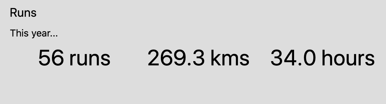 If current trends continue, I reckon I should get to 114 - 116 runs next year. ButΒ I'm going to keep the same short-term goal: 100 runs. I think I'm also going to set a proper long-term goal with running to help me focus more on long-term health.