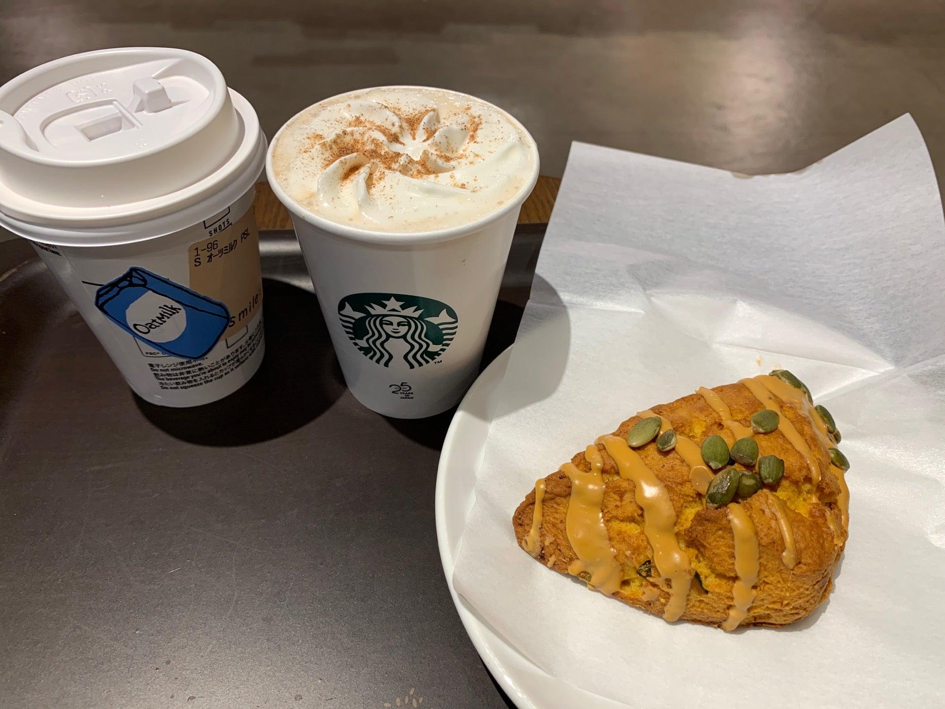 by in Kanagawa, JapanNo family mart socks, but PSL and a Pumpkin scone.Oat Milk Pumpkin Spice Latte and Pumpkin Scone. -