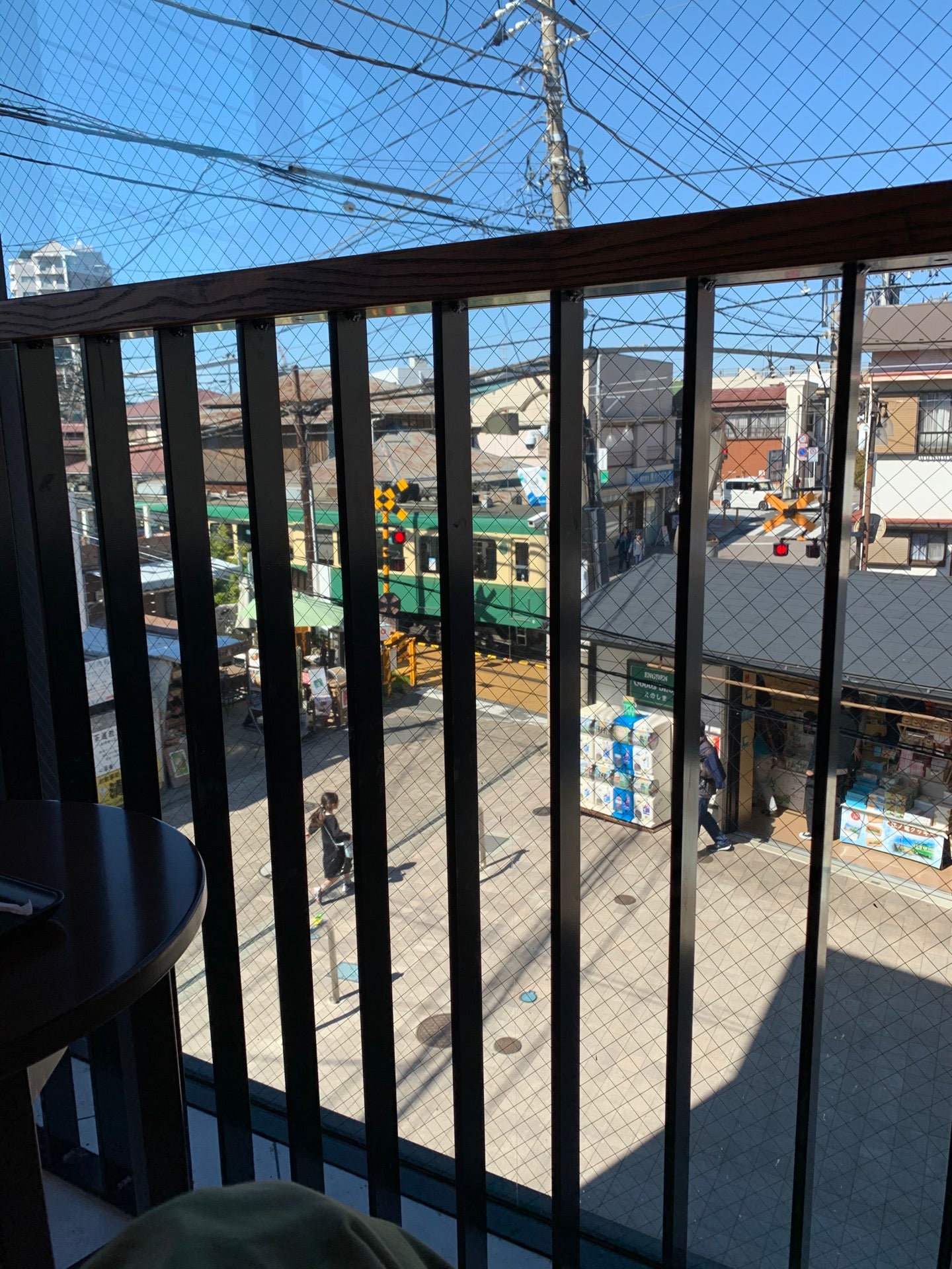 The best spot to drink a coffee and watch some trains in front of Enoshima station.