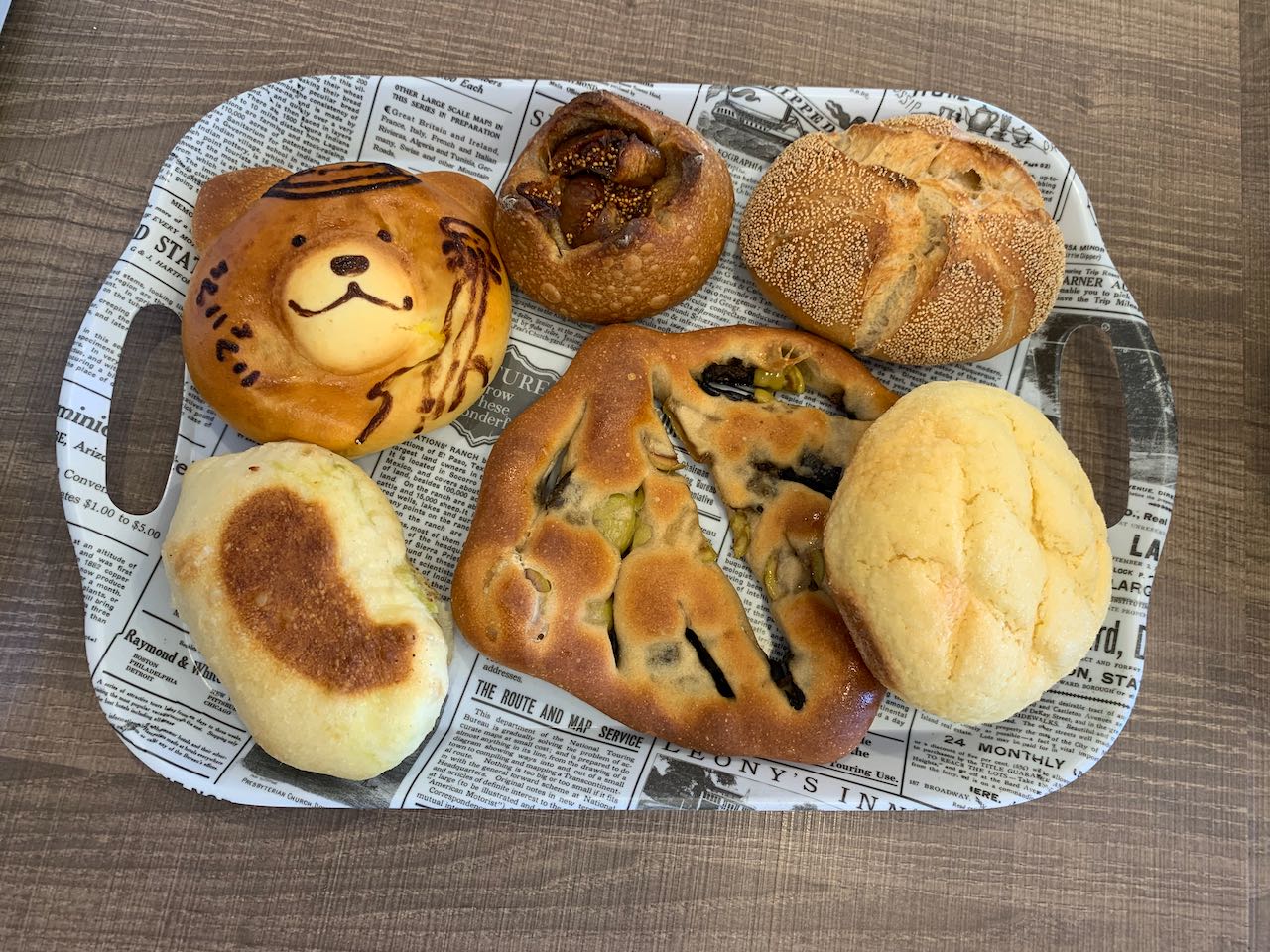 Lunch for when I get home.Excellent bakery in Fujisawa. So many delicious breads. Each cream bread had a different bear drawn on it. -
