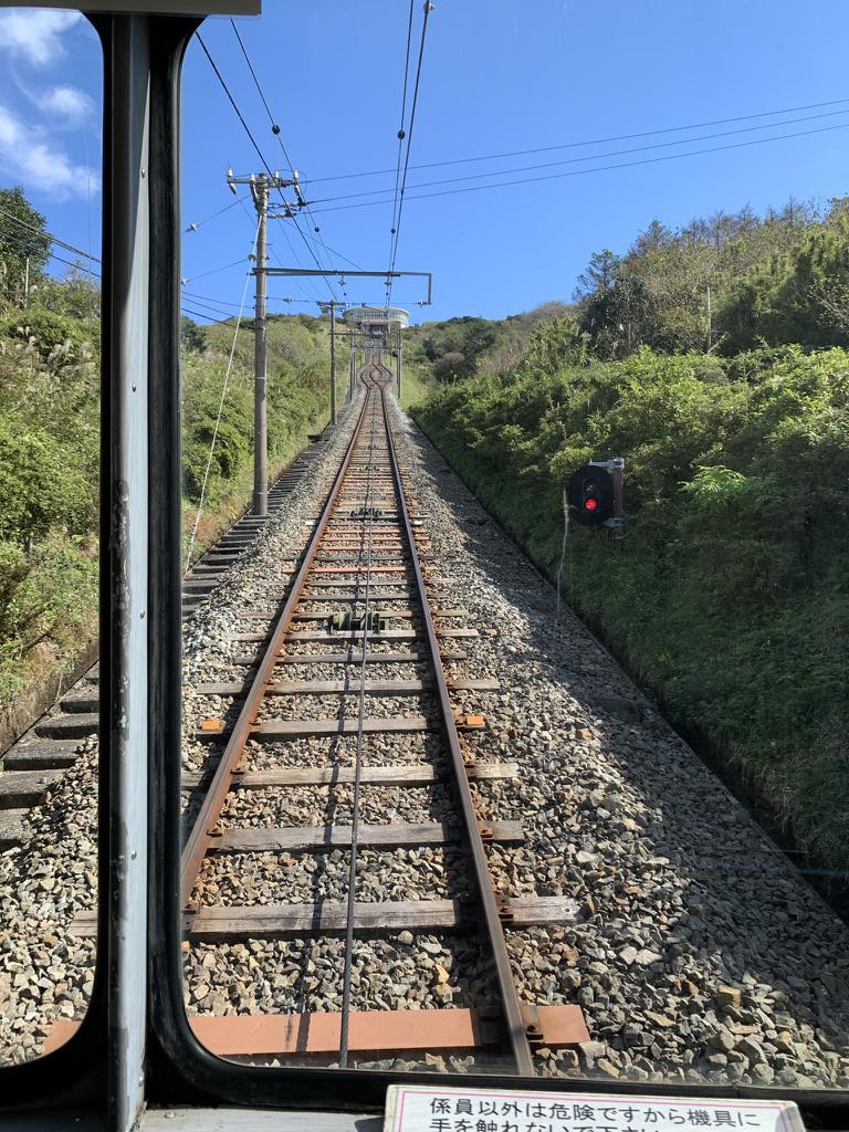 After that we went to Jukkoku Touge (Ten Mountain Pass) to ride the cable car.Riding up the side of a mountain.