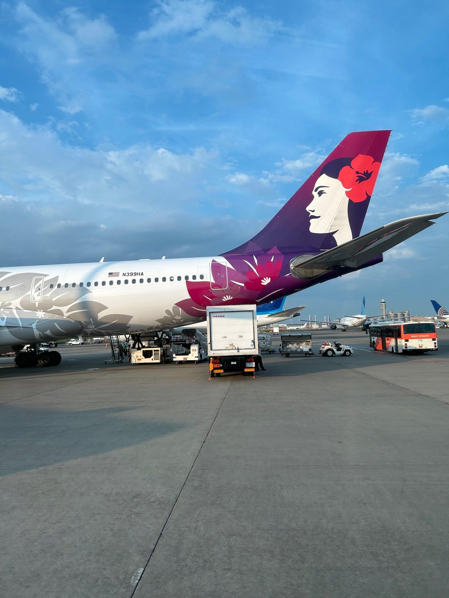 βοΈ We stayed at a hotel near the airport because our flight was scheduled to leave at 8:45am. Hawaiian Airlines is so good. One of our bags was a bit over the limit and they didn't care or charge us. But even better was, because they heard TSA had long lines, she stamped our boarding passes for priority security checks, meaning we got to skip the wait.