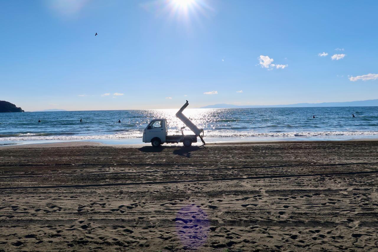 The city was doing some maintenance and they had made some huge piles of sand on the beach. Every so often there was a kei-truck taking a load of sand and dropping it along the beach.Dumping sand on the beach - π‘οΈ Speaking of Zelda we got the Master Sword in breath of the wild. We finally got enough hearts to get it.