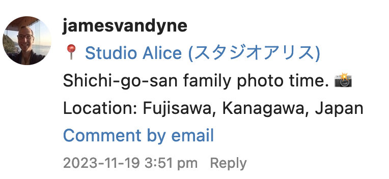 But the moment I got home, Leo was appreciate and said thank you. I b-lined to bed and slept for 12 hours. At its peak I had a 38.3cย (101f) fever. Thankfully when I woke up in the morning I felt much better. I still have a bit of a lingering cough that's getting a bit better each day. - ๐ธ We got the entire family together for Leo's shichi-go-san photos and family photos.ย Leo as dressed in hakama and Yumi, and myself dressed in kimono. As we rescheduled on short notice, the adults didn't have the option of picking any kimono we wanted. Rather, we had to pick from their stock that day.