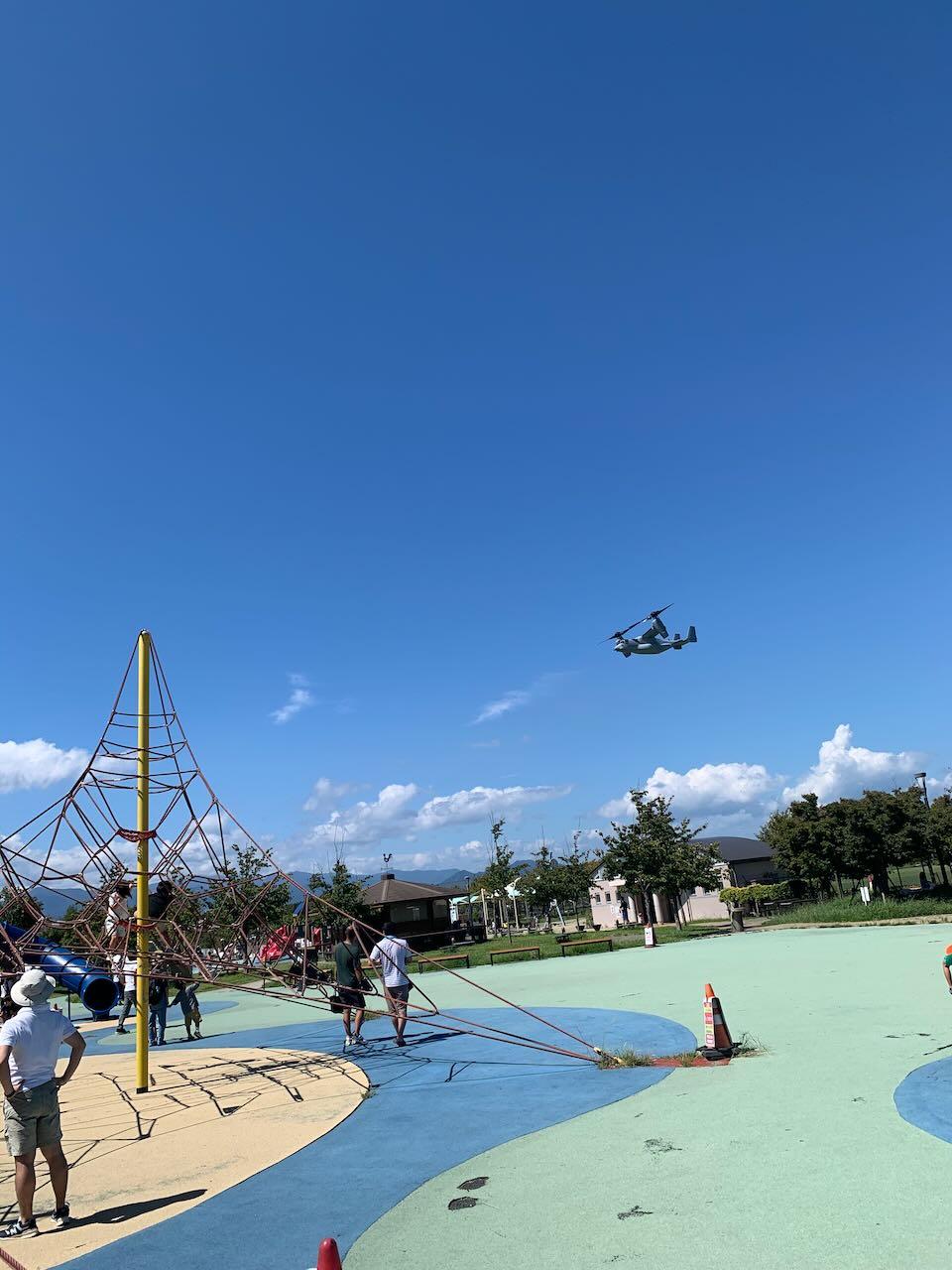 As the park is next to an airbase, we got to see a bunch of different airplanes take off, including an Osprey, which was really cool. I've never seen one of them outside of videos online or on the news. And turns out there's only 2 in Japan!Half of the Japanese Osprey fleet r taking off Some military aircraft going somewhere