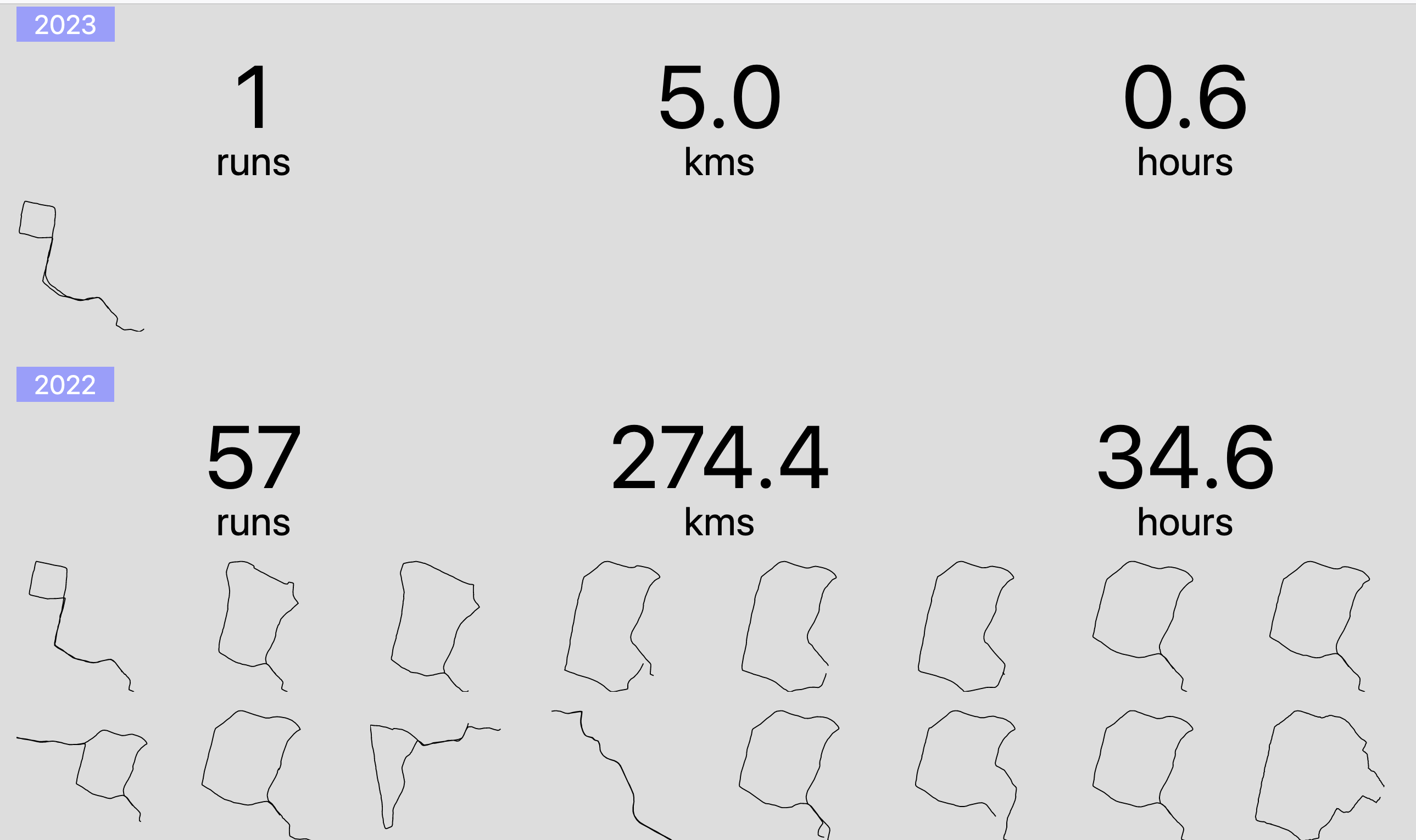- I'm really proud of the public runs page I've managed to design thus far. There's still room for improvement, but I'm really happy with the gallery of paths. Fun fact, the open graph/meta image that's displayed when you link to it changes each time I go for a run. If you haven't yet, give it a scroll.