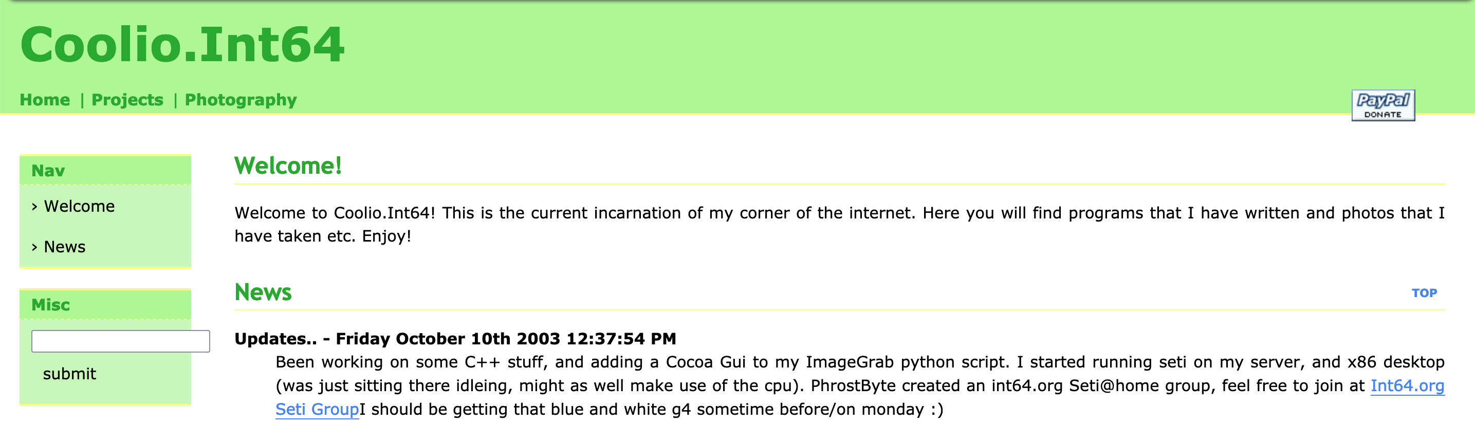 My online home has moved a number of times over the years. My first blog was around 2003 on a friend's domain in high school (it's up on the Wayback Machine !!).My first blog. Wish I kept a screengrab of that Cocoa Gui.